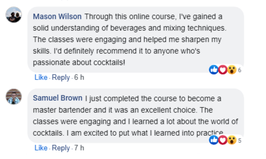 - Prefer learning from home? No problem. You can spend more time with loved ones while mastering the art of crafting delicious drinks and cocktails.